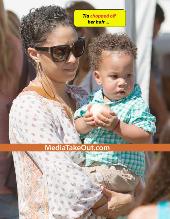 Tia was spotted days ago out and about with her son, Cree, sporting her new curly do.