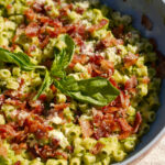 Return the cooked pasta to the skillet over low heat. Pour the pea sauce over the pasta and toss gently to coat. Add additional pasta water as needed to loosen the sauce and help it cling to the noodles.