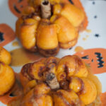 Add the stem. Break Pirouette cookie sticks into smaller pieces and press one into the center of each roll to look like a pumpkin stem.